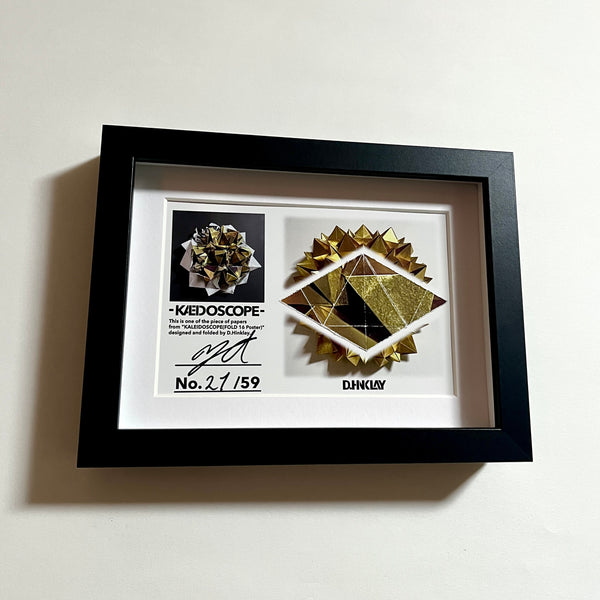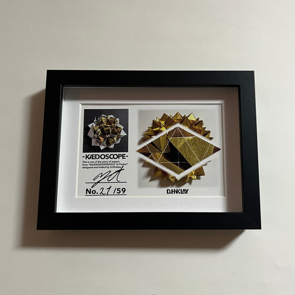 D.Hinklay 個展 FOLD AND NON-MEANING 東京のポスターを使用し制作した作品 Kaleidoscopeを分解し、額装したグッズ。